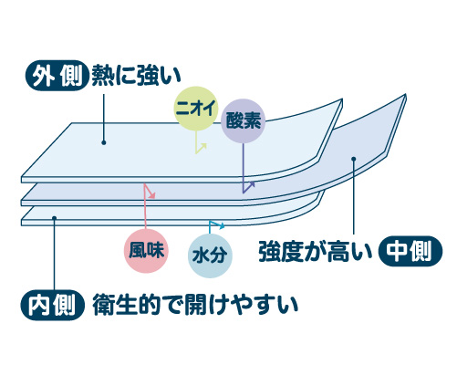 A:おいしい袋モフは多層構造で、臭わない袋BOSのメーカーが開発した<強度・耐熱性・防臭性>が圧倒的に優れた高機能ポリ袋です。