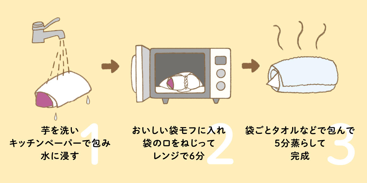 簡単!3ステップで完成「レンジで ふかし芋✨」