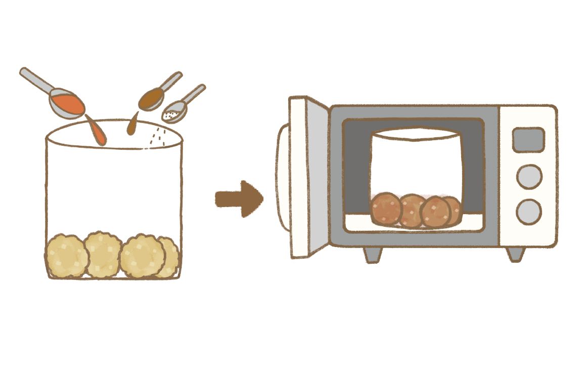 ・食材の大きさや厚み、空間の温度などにより、加熱・保温等の時間は異なりますので、適宜火の通りを見ながら調整してください。