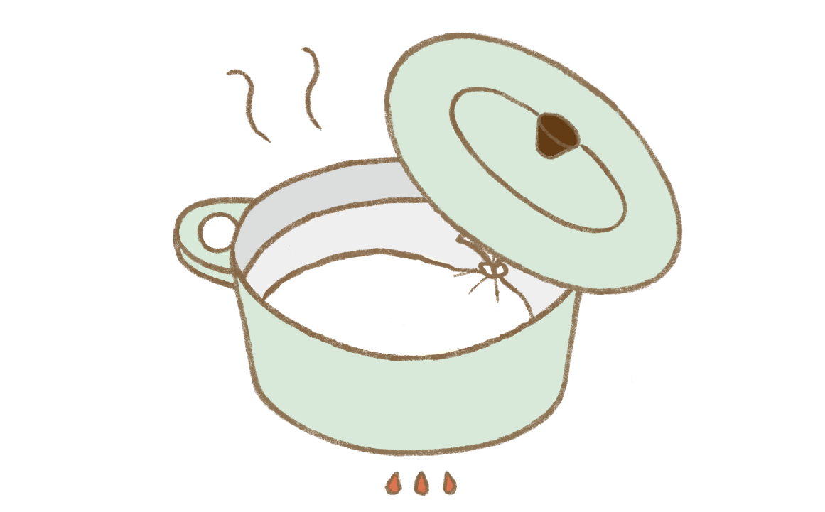 鍋で湯を沸かし、沸騰したら①を入れ、再沸騰してから30分湯煎する。