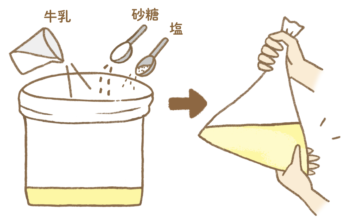 ①に⽜乳・砂糖・塩を加えてよく混ぜる。