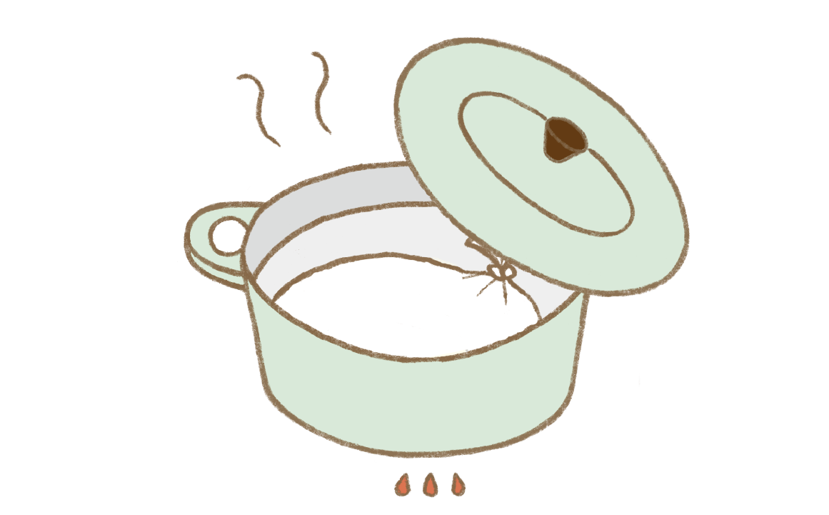 鍋で湯を沸かし、沸騰したら①を入れ、再沸騰してから30分湯煎して完成。