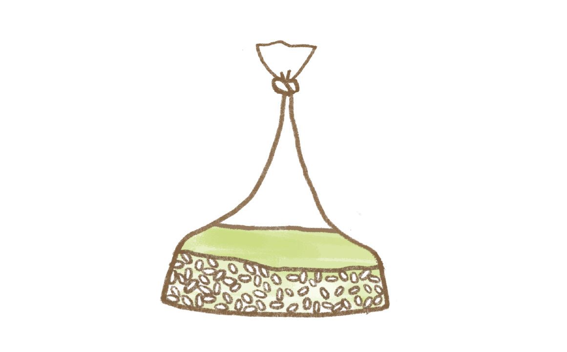 おいしい袋モフに米と緑茶を入れ、袋の空気を抜いて口を上の方で結び、30分浸水させる。