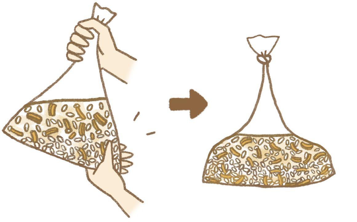 ・袋が熱くなっている場合は布巾等を使って持つようにしてください。