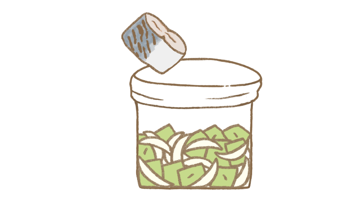 おいしい袋モフに①を入れ、さば缶の具のみ加える。