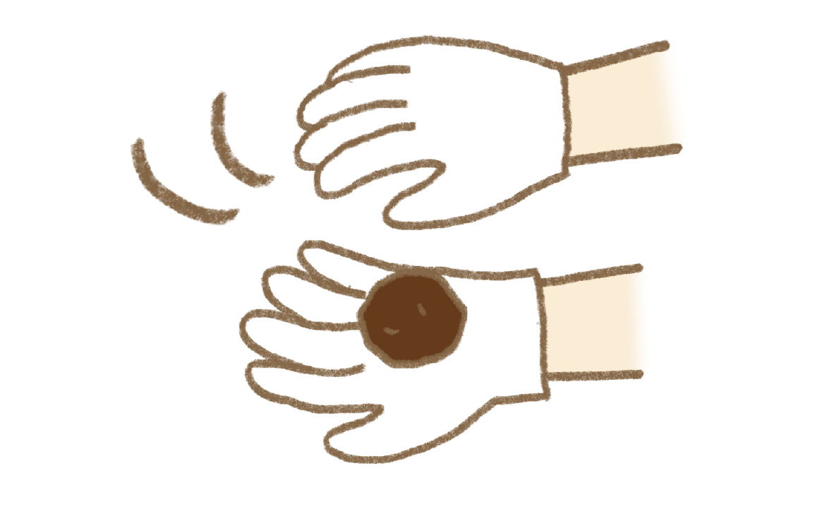 ①にココアパウダー以外の材料を全て入れてよく混ぜ、袋の口を閉じ、冷凍庫で1時間冷やす。
