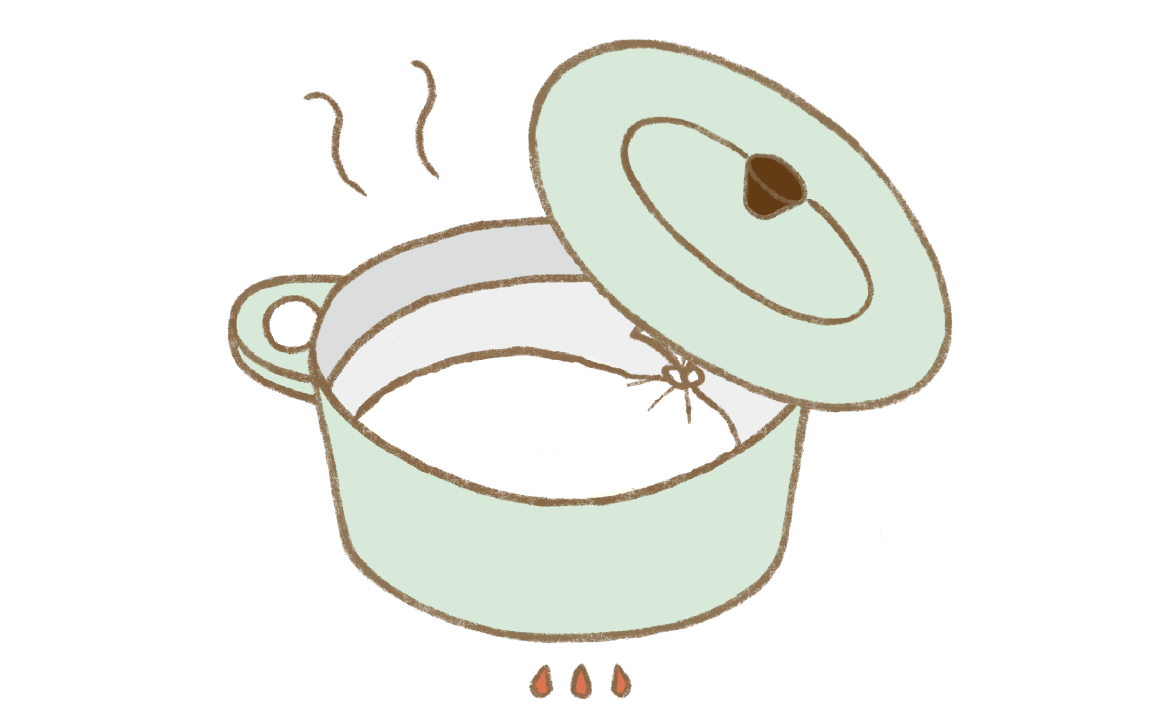・湯煎の際は深型の鍋を使用し、袋が鍋のフチから出ないようしてください。