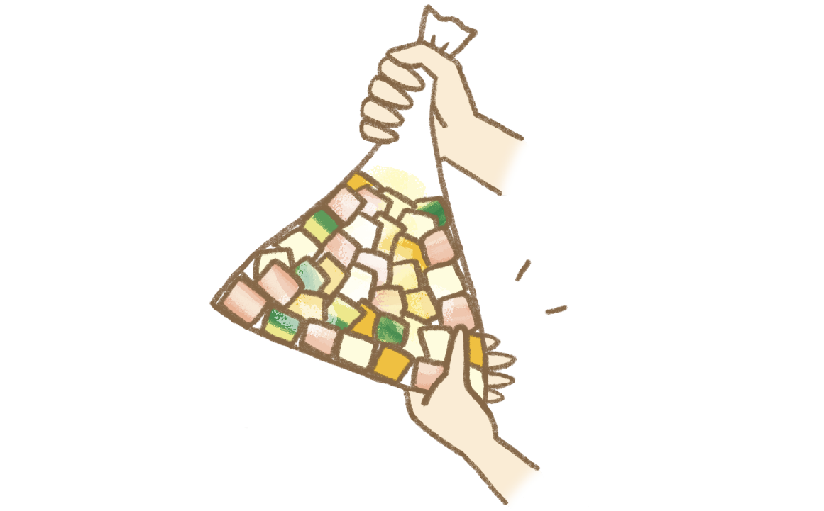 ・袋が熱くなっている場合は布巾等を使って持つようにしてください。