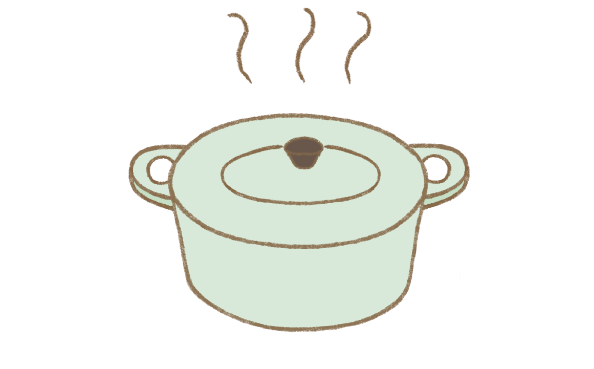 ②が沸騰したら、弱火にして5分湯煎し、火を止め蓋をして10~15分蒸らして完成。